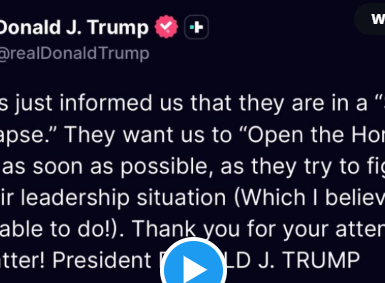 President Trump says Iran has informed him they’re in a STATE OF COLLAPSE