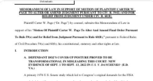 - Carter Page: Solid Basis For Overturning Dismissal Of Lawsuit Against DOJ – see Real Clear Politics article