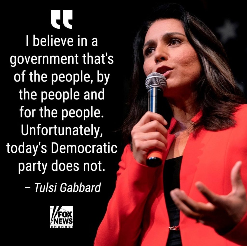 - Tulsi Gabbard leaving ‘elitist’ Democratic Party, blasts ‘cowardly wokeness’ – New York Post article