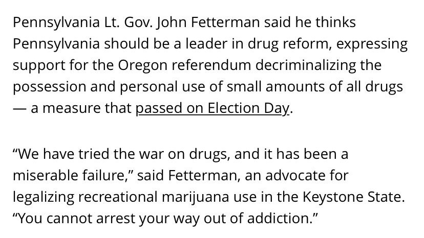 2015: Fetterman calls for “decriminalizing drugs in general." pic.twitter.com/JN3PUZlZWR
