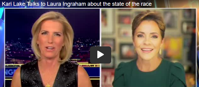 After this fast clip, the interview on the Laura Ingraham show is below,  along with MUCH more of Kari Lake, future president of the US (After Trump, then DeSantis for two terms) 🙂