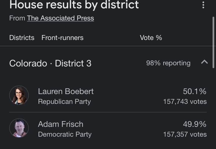 .@LaurenBoebert is 1,229 votes ahead of @AdamForColorado now.