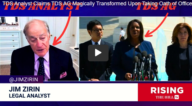 Maybe this isn’t surprising considering that the observation is coming from a TDS liberal legal analyst, Jim Zirin, on “The Hill Rising.” However his assertion that the Trump hating New York Attorney General Letitia James who loudly promised during her election campaign that she would be going after Trump via Lawfare somehow magically transformed when she took her oath of office into a font of judicial fairness and playing it by the book sans any bias is quite laughable.