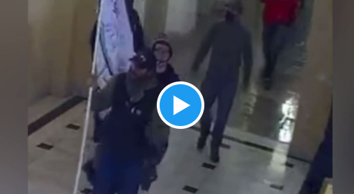 🚨Newly released footage of Matthew Perna (seen in red sweatshirt) shows Matthew walking calmly in the Capitol shooting video.