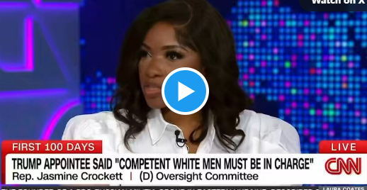 Rep. Jasmine Crockett (D) on DEI: “I’m so tired of white tears from mediocre white boys” Why are the Democrats STILL allowed to be racists on our airwaves. Trump’s FCC is getting ready to crack down on all racist and fake media. Like CNN…. It’s coming folks, CNN and MSNBC will not look the same in just weeks I bet…. BAM