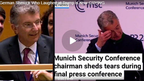 Back in 2018 when President Trump gave an ACCURATE warning at the United Nations about the dependence of Germany upon Russian energy, the German Ambassador to the UN, Christoph Heusgen, mockingly laughed upon hearing those words. Flash Forward to 2025 and the advent of Trump World has left Heusgen, now the DEPARTING Chairman of the Munich Security Conference, crying tears over his world crashing down upon him. Oh, and will Heusgen laugh or cry when it it proven beyond a doubt that Joe Biden ordered the blowing up of the Nordstream pipeline thus wrecking the German economy?