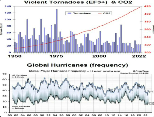 - MORE LIES about EXTREME Weather due to the so-called man-made Climate Change HOAX. Here are the Facts… FEWER Tornadoes & Hurricanes in recent Decades! They Seize on Weather Headlines of the day & CREATE Hysteria ignoring Climate History & FACTS! On the CO2 – Earth had far more green when we were at multiples of where it is now. We need CO2, it is called plant food.