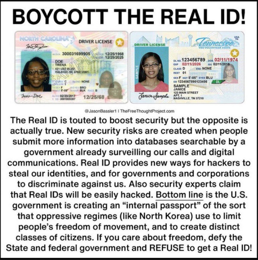 For those who are too damn lazy to research why REAL ID leads to their own enslavement, I’ll throw ya a bone… The REAL ID is an “internal (federal) passport” system just like the one they had in the Soviet Union, and currently have in North Korea. Now ask yourself… WHY is the United States Government FORCING its citizens participate in a COMMUNIST program which is in VIOLATION multiple Constitutional Amendments like the 4th and 10th? WHY is the Trump Administration moving forward with this UNCONSTITUTIONAL mess instead of putting a STOP TO IT? Still think it’s “just a drivers license”?