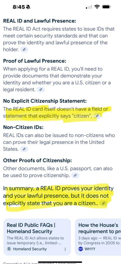 Some more on Real ID…. Real ID does NOT even prove citizenship. Then why?