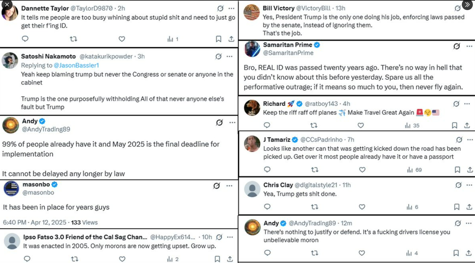 This is exactly why they waited for Trump to enforce the REAL ID deadline. His supporters will not only eagerly support it, but actively justify and defend it. Just look: