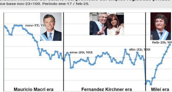 Private sector wages in Argentina just spiked to their best level since 2018—real wages hit 107 in Feb 2025, up from a sad 91 in late 2023. What changed? Oh, just Milei dropping economic reforms like they were hot. People called it “shock therapy.” Turns out, it was more “money therapy.” Critics yelled, “He’ll crash the economy!” Workers are now yelling, “Payday!” Love him or hate him, Milei’s free-market rollercoaster is actually handing folks fatter checks—for the first time in forever. Source: Observatory of Employment and Business Dynamics, @JMilei , @ArgMilei
