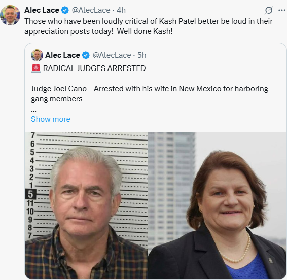 We believe Judge Dugan intentionally misdirected federal agents away from the subject to be arrested in her courthouse, Eduardo Flores Ruiz, allowing the subject — an illegal alien — to evade arrest. Thankfully, our agents chased down the perp on foot and he’s been in custody since, but the Judge’s obstruction created increased danger to the public. – Kash Patel