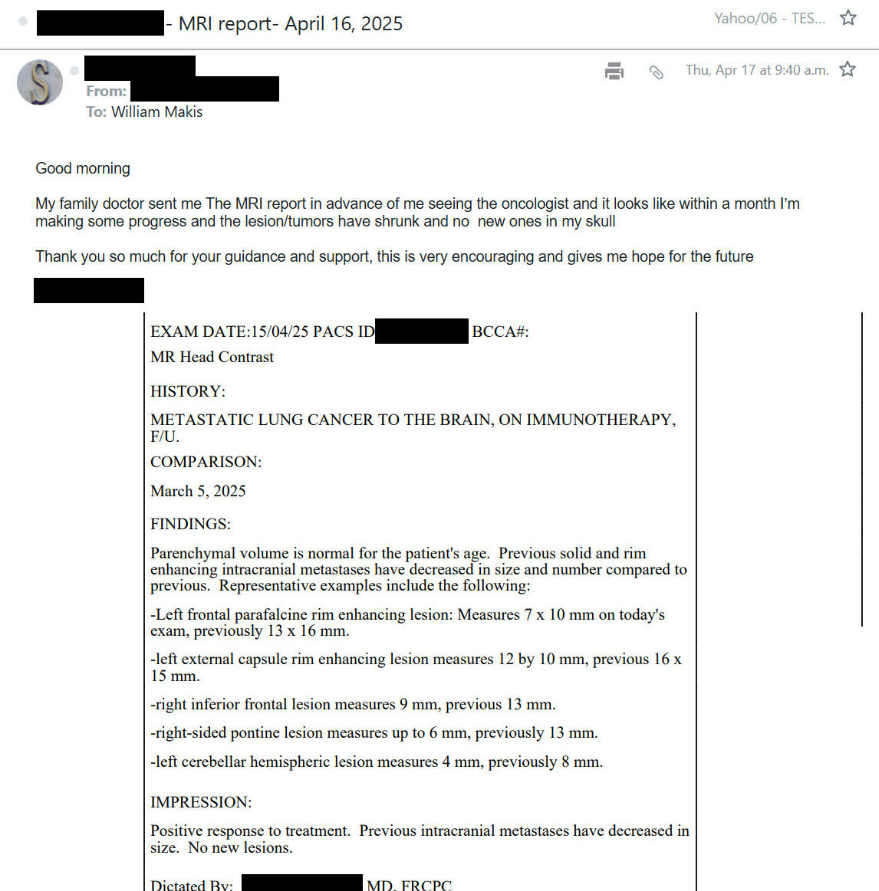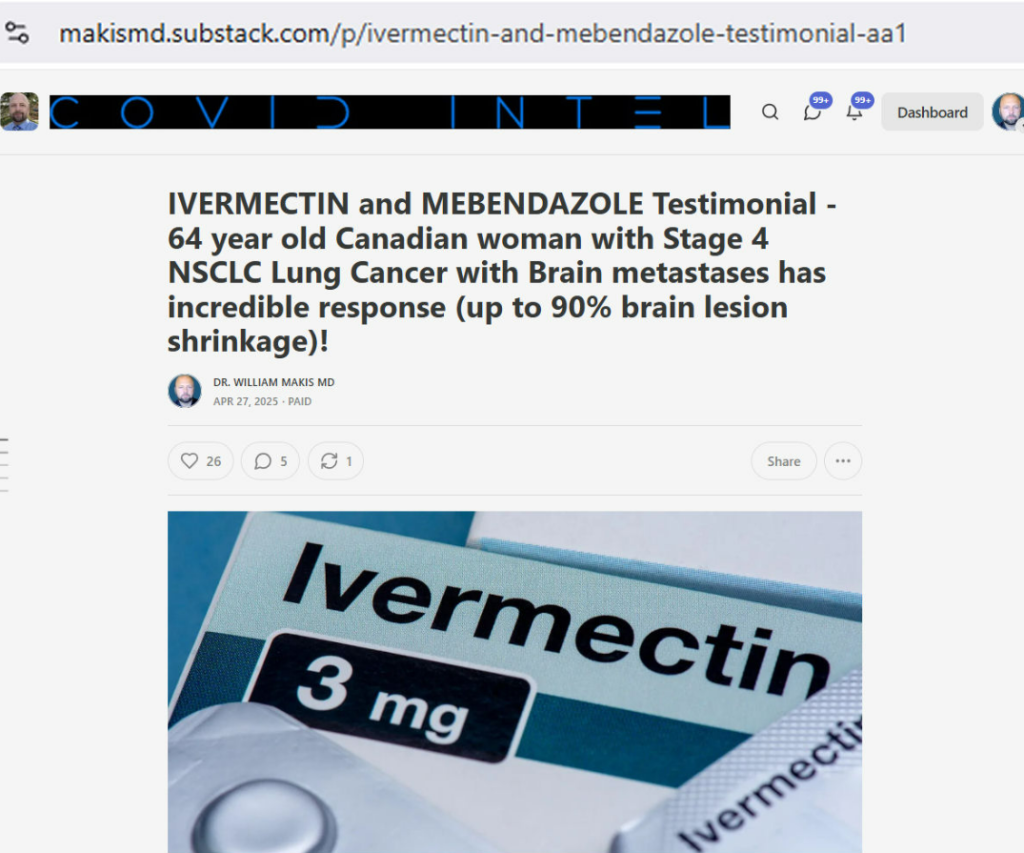 NEW ARTICLE: IVERMECTIN and MEBENDAZOLE Testimonial – 64 year old Canadian woman with Stage 4 NSCLC Lung Cancer with Brain metastases has incredible response (up to 90% brain lesion shrinkage)! I always get asked about cancer in the brain. Well, there is hope there too! STORY: 64 year old Canadian woman with Stage 4 NSCLC Lung Cancer with 20+ Brain metastases We started in mid February 2025: Ivermectin 1.5mg/kg/day Mebendazole 2000mg/day (yes, you read that correctly. Now you know why the clinical trials they did with Mebendazole at 200mg/day didn’t work) RESULTS after 2 months: Lesion 1 – 16x13mm to 10x7mm = 80% shrinkage Lesion 2 – 16x15mm to 12x10mm = 65% shrinkage Lesion 3 – 13mm to 9mm = 67% shrinkage Lesion 4 – 13mm to 6mm = 90% shrinkage Lesion 5 – 8mm to 4mm = 88% shrinkage
