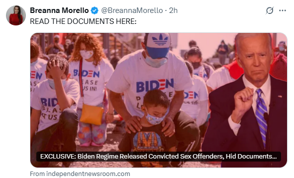 DHS knowingly released convicted sex offenders into the US under the Biden regime’s leadership The agency required sex offenders to register for a “sexual deviancy counseling program” and to register as a sex offender within a specific time frame. These forms were to be filled out before their release. This information was ONLY obtained after I sued TSA for failing to comply with my FOIA request. The Biden regime lied and said these documents did not exist, but the Trump administration has since turned them over. READ THE FULL STORY AND DOWNLOAD THE DOCUMENTS AT THE LINK BELOW: