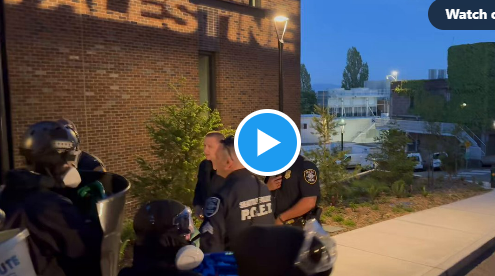ANTIFA pushes Seattle PD down a hill, fully repelling them from the lecture hall of interdisciplinary engineering.