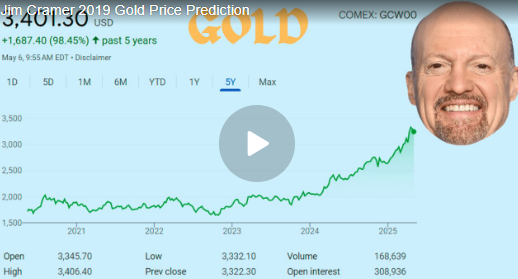 Gold prices have reached record heights of around the 3400 level recently. So what do you think Jim Cramer predicted about where gold prices were heading back in 2019? Well, if you know anything about Jim Cramer you should already know the answer to that question.