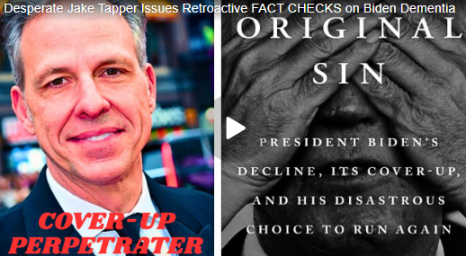Poor Jake Tapper is about to face a BRUTAL week hyping his new book “Original Sin” about the coverup of Joe Biden’s mental decline. Too bad for Tapper that he was at the forefront of the media coverup with plenty of video clips to prove it. So what to do? Well, apparently Tapper must have thought that his waaaay too late FACT CHECK in the affirmative of a statement by President Trump that there was a coverup of Biden’s mental decline would serve as his shield to protect him from the upcoming attacks on his credibility. FACT CHECK: Won’t Work! Therefore we have done him a favor by going back in time and have Jake Tapper give FACT CHECKS in the past that Biden was indeed in a steep cognitive decline.