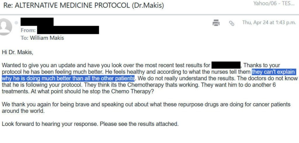 People are being cured or defeating cancer all over…. Big Pharma is pisses as they want patients on their drugs forever and insist, we need studies that cost 500 million dollars and years to get results. Well – since scientists are more easily bought than politicians and media, can we trust them to wait as people die? Screw them and screw the media – we’ll keep showing people how others have survived and thrive vs cancer. Life is too important to let Big Pharma kill you if you have cancer or any disease. – Mal Antoni