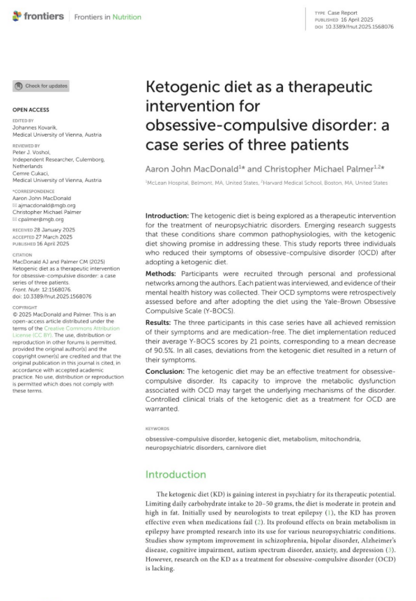 Wow new scientific paper shows ketonic and Carnivore diets can put OCD into full remission!!