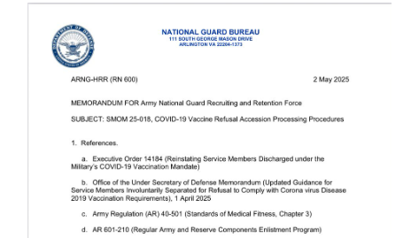 So the Nat Guard is going around Pres Trump’s EO: NOT reinstating the unvaccinated who were forced out, not giving them back-pay as Trump ordered & insisting they go back & process as if they’re 17-years-old in spite of injuries from their service that would disqualify them today – knowing this – now Hegseth can target the criminal Leftists in the National Guard who are doing this – and FIRE THEM or throw them in prison for disobeying orders. Mal