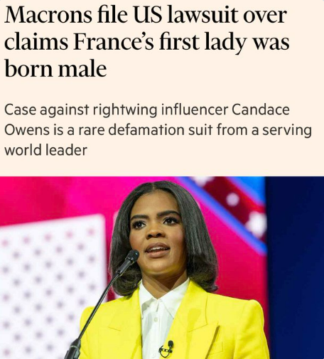 French President Emmanuel Macron has filed a lawsuit against podcaster Candace Owens over her repeated claims that his wife, Brigitte Macron, is a man.  Which by the way she has proven to be a fact in her extensive episodes on it all. The lawsuit, filed Wednesday morning in the Superior Court of the State of Delaware, describes Owens’ claims as “devastating lies” and states that the podcast host “disregarded all credible evidence disproving her claim in favor of platforming known conspiracy theorists and proven defamers.”In 2024, Owens—then a host at The Daily Wire—boldly stated that she would stake her “entire professional reputation” on Brigitte Macron being a man. Since then, Owens has repeatedly insisted that the French first lady was born a man. She even launched an eight-episode series called “Becoming Brigitte” to further examine the baseless conspiracy theory.  Continued below the vid clip