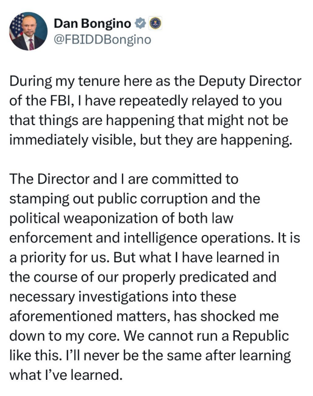 - FBI Deputy Director Dan Bongino just dropped a bombshell…