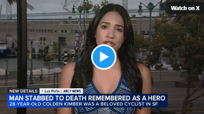 Beloved San Francisco cyclist stabbed in the neck and killed in an unprovoked attack while trying to protect a woman and her kids from a crazed junkie.