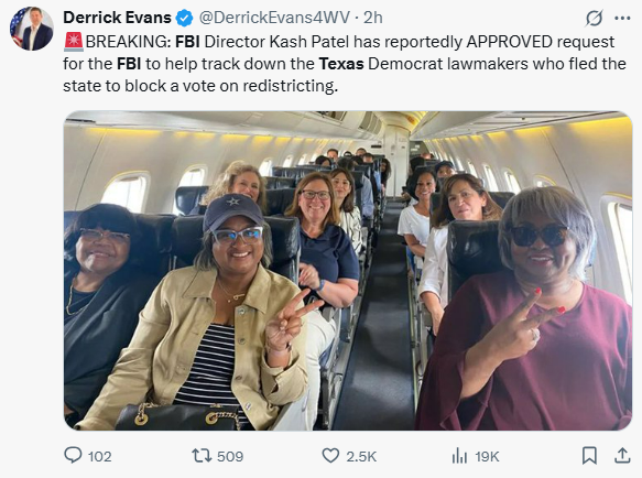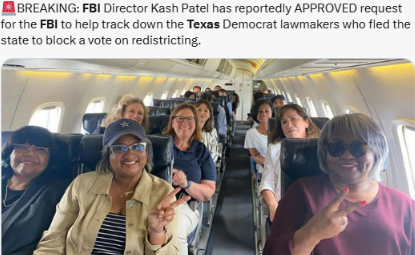 - FBI Director Kash Patel Tapped to Help Arrest Runaway Texas Democrats