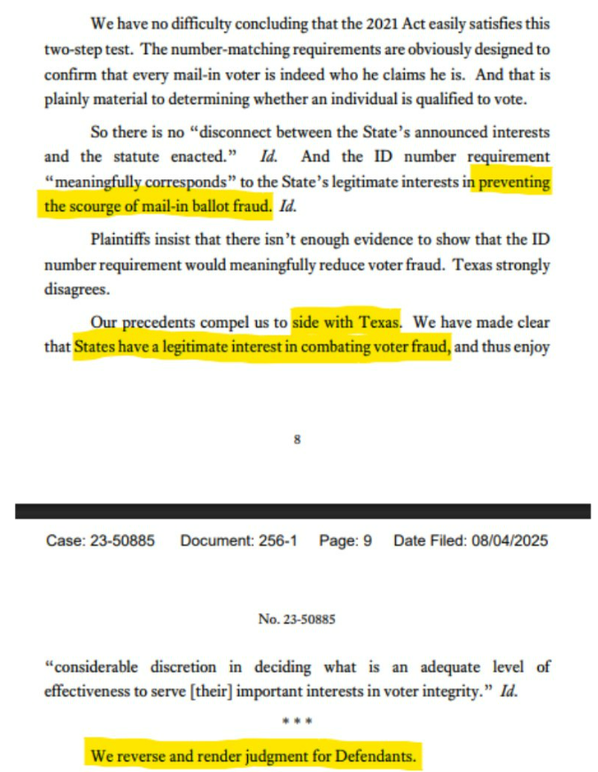 - Texas Law Requiring Voter ID for Mail-In Ballots Wins After Biden Admin Lawsuit