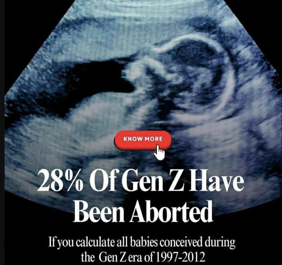 A shocking statistic went viral this week: 28% of Gen Z has been aborted.