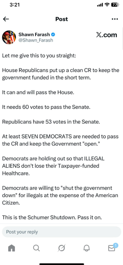 If nothing changes, we’ll enter a Schumer Shutdown™️ tomorrow night.