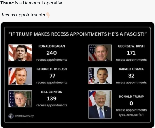 BREAKING 🚨 John Thune just announced he will not allow Trump to make any Recess appointments