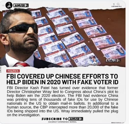 Under Kash Patel’s FBI directorship, the bureau has finally “outed” China’s scam, vindicating Sidney Powell’s four lawsuits that exposed the CCP’s ballot factories. The Gateway Pundit reported Patel handing Congress intelligence showing Wray suppressed 2020 probes into Chinese interference to protect Biden. FBI documents reveal CCP-linked firms mass-produced fake ballots and IDs, with shipments traced to U.S. ports—confirming Powell’s claims of “hundreds of thousands of fraudulent ballots imported from China.” Breitbart hailed this as Powell’s triumph, noting her Kraken lawsuits alleged exactly this: Foreign adversaries like China colluding with Democrats to rig Dominion systems. The Washington Times quoted FBI intel: China produced fraudulent driver’s licenses for mail-in fraud, aiding the overthrow.
