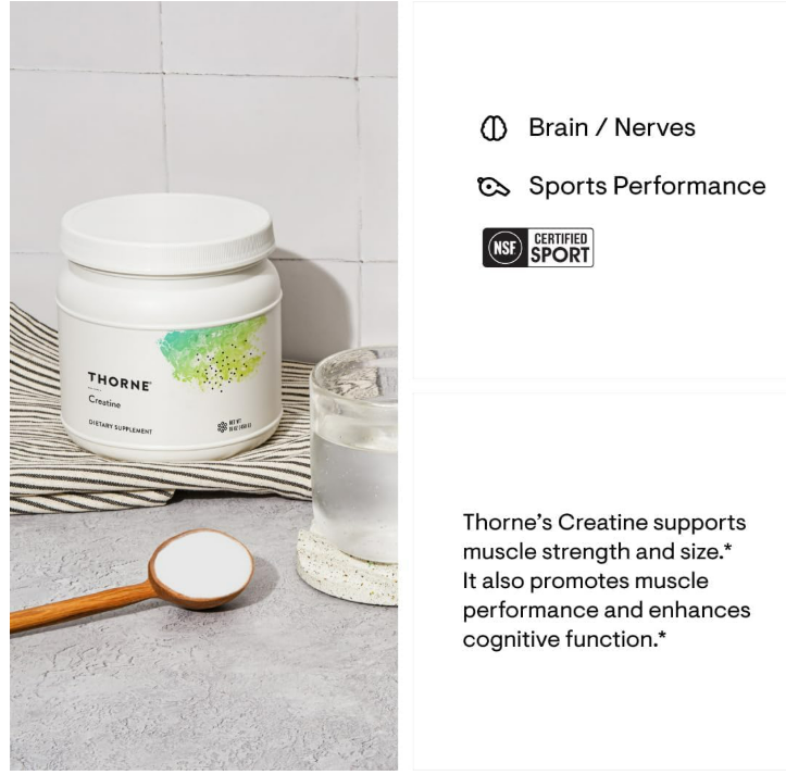THORNE Creatine – Micronized Creatine Monohydrate Powder – Support for Muscles & Cognitive Function* – for Women & Men – Unflavored – NSF Certified for Sport – 5 g per Serving – 90 Servings