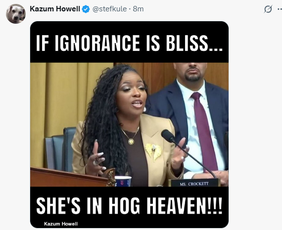 Deranged Jasmine Crockett said Hispanics who voted for President Trump in 2024 have “slave mentality.” Now, she says she will perform best with them in 2026.