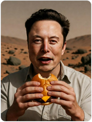 ELON MUSK: “American food is my favorite food. Cheeseburgers are my favorite. If I had to say, like, only one thing you can ever have for the rest of life, it would be a cheeseburger because cheeseburgers are amazing. It’s a genius invention.”