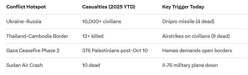 - UN reports 2025 as the bloodiest yet: 10,000+ civilian casualties, with today’s Russian Iskander strike on Dnipro killing 4 and injuring 40.
