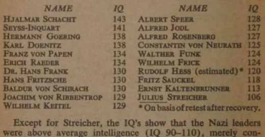 During the Nuremberg Trials, the Allied psychologists assigned to evaluate the defendants conducted a series of IQ tests as part of a broader effort to understand their personalities, motives, and mental states. The examiners used the Wechsler Bellevue scale, which was considered more accurate for adults than older testing methods. The results showed that nearly all of the major defendants scored above the average range for the general population. Hjalmar Schacht recorded the highest score at 143, while Hermann Goering scored 138, and Rudolf Hess was estimated at 120 after a period of mental instability that complicated his assessment. The testing did not attempt to measure morality or character. Instead, it offered a narrow measure of mechanical problem solving and verbal reasoning. The examiners noted that intelligence alone provided no insight into why these individuals participated in such destructive policies. Many of the defendants combined intellectual competence with rigid ideology, loyalty to the regime, and a willingness to follow or enforce orders. The results became a reminder that high cognitive ability does not prevent harmful choices and is not a safeguard against participation in violence or abuse of power. The psychologist who administered many of the tests, Gustave Gilbert, later wrote detailed journals about his interviews with defendants. These journals became one of the most important firsthand psychological records of the Nuremberg Trials. © Historical Photos