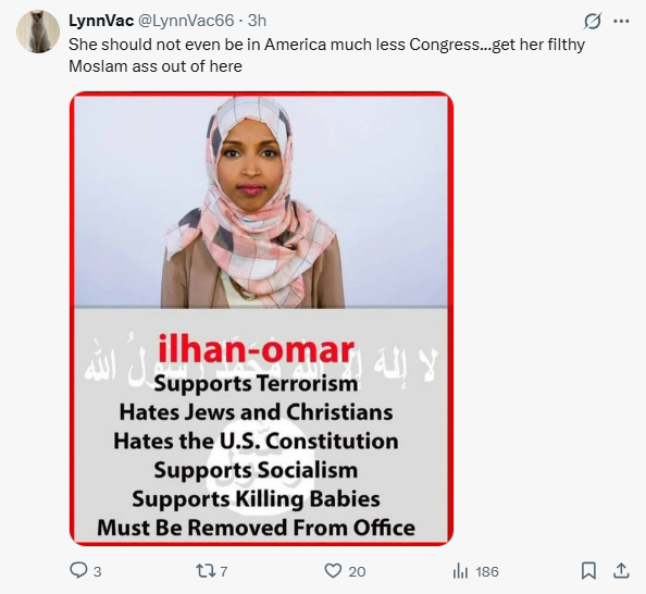 THIS Sharia Law wanting, Constitution destroying, America hating, Jihad loving, Death to America piece of fcking shite right here can go fck herself and anybody like her that thinks that way!”