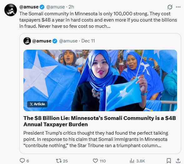 The Somali community came to Minnesota and discovered American politicians who were willing to partner with them to rob American taxpayers. The scale of this theft boggles the mind.