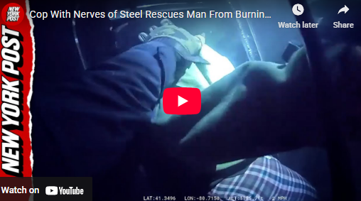 Cop With Nerves of Steel Rescues Man From Burning Car