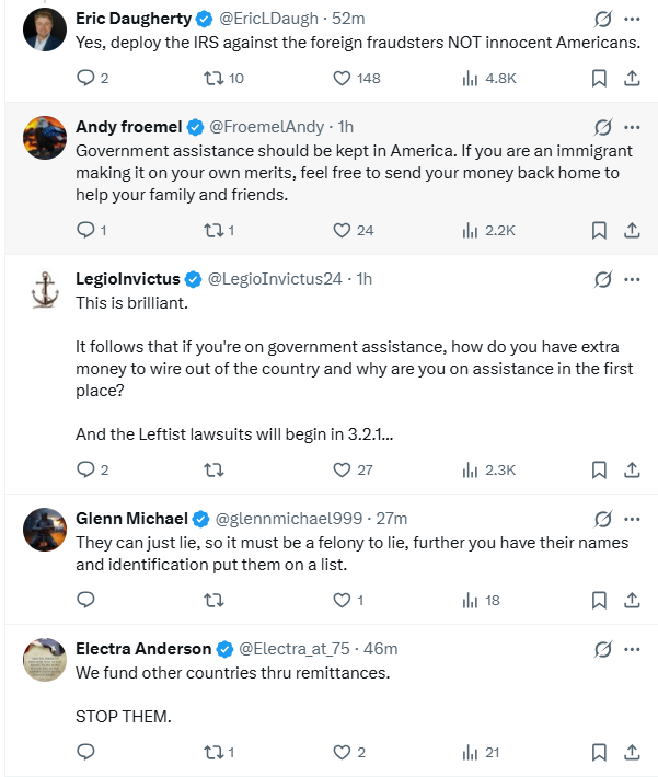 JUST IN: Sec. Scott Bessent is now moving to BAN anyone that receives government assistance from wiring money out of the country after Somali fraudsters were caught in Minnesota “If you are wiring out of the country, you’re either getting TOO MUCH or you’re part of this CONSPIRACY! We’re gonna find out!” “Our generosity has been TAKEN ADVANTAGE OF!” “From now on, anyone who wires money out from one of these money service businesses has to check a box saying whether they are on public assistance.” “And if you are on public assistance, we are going to start pushing that you cannot wire money out of the country.”
