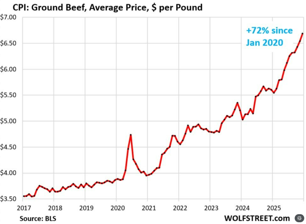 - Most people will hate this but ground beef jumping 72% while chicken only rose 36% proves the real winners are corporate meat packers quietly squeezing beef lovers hardest—welcome to the new normal where steak is luxury and beans are the future. – Totinho