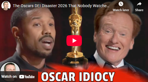 The 2026 Oscars happened last night — not that anyone noticed. What was once a beloved Hollywood tradition has devolved into a DEI checklist ceremony watched by aging baby boomers who can’t figure out their Netflix password. Conan O’Brien hosted, took shots at Turning Point USA’s wildly successful Super Bowl alternative stream, and oversaw a night that proved exactly why nobody’s watching anymore. The Academy’s DEI standards are literally published policy now, dictating casting, crew, and creative leadership just to qualify for consideration. Best actor went to Michael B. Jordan for Sinners — a vampire flick that’s really just an anti-white allegory in fangs, directed by the guy behind Black Panther. Richard Dreyfuss said what everyone’s thinking and nearly gave the interviewer a heart attack. The New York Times begged celebrities to attack Trump from the stage, warning that silence might literally end democracy.