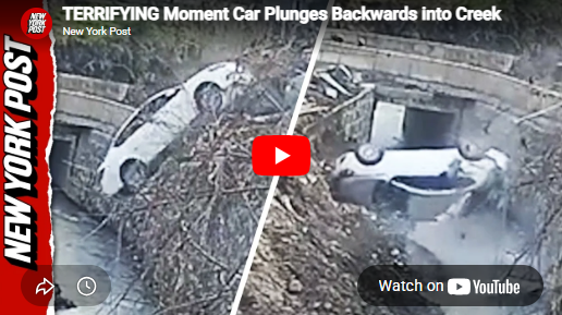 Watch the terrifying moment a sedan carrying a child fell backwards into a creek, in Hunan Province, China, flipping upside down as it lands. Luckily workers nearby were able to help rescue the passengers. The driver and two passengers were reportedly unharmed.