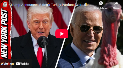 New York PostWhatfinger News Trump’s Humor and Sarcasm: Trump Announces Biden’s Turkey Pardons Were Illegitimate Over Autopen Use 1 week ago
