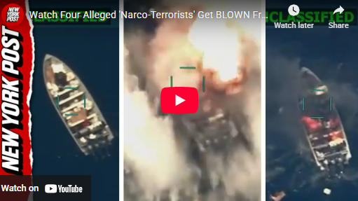 New York PostTop Vids Watch Four Alleged ‘Narco-Terrorists’ Get BLOWN From the Water in Latest US Strike 1 month ago