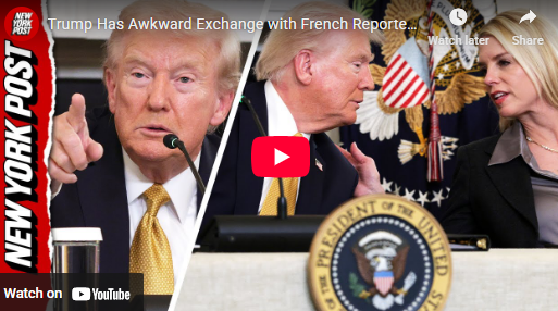 New York PostWhatfinger News Trump Has Awkward Exchange with French Reporter, Asks Bondi, ‘Will You Please Answer That?’ 1 month ago