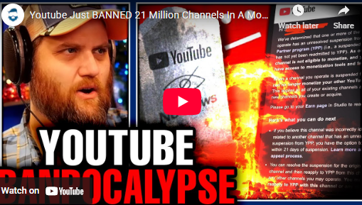 QuarteringWhatfinger News Youtube Just BANNED 21 Million Channels In A Month & It’s Getting Much Worse! AI Moderation Is Bad 3 days ago