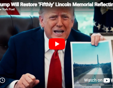 Top Vids Trump Will Restore ‘Fifthly’ Lincoln Memorial Reflecting Pool Back to ‘American Flag Blue’ 3 hours ago